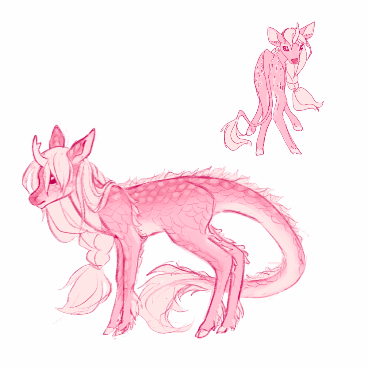 kienan is a young kirin, which in his universe can shapeshift into a small dragon, a deer, a unicorn, or a human, and any form in between. his body is a natural wellspring of healing magic, amplified when he experiences intense emotion. when he is happy and content his magic overflows into the world around him, growing plants in his wake, healing injuries, increasing stamina and strength. in a fully realized adult form he would be able to heal and purify whole lakes and forests and be naturally driven to settle himself as a guardian spirit of a chosen region, but prolonged trauma and repeated deaths have stunted his growth, keeping him in what seems to be a permanent neotenous state, unable to access his most advanced forms and limited in the scope of his powers.